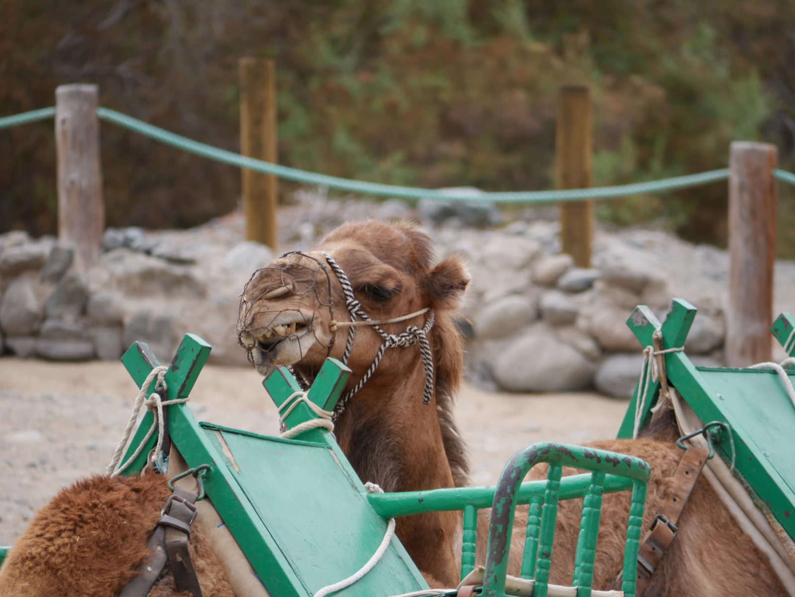 Erster Programmpunkt: Reiten auf einem Kamel. Parke mit Deinem Auto in der Straße „Calle Tourop Neckerma“. Dort befindet sich ein kleiner Parkplatz, von dort sind es dann noch ca. 10 Minuten zu Fuß zu den Kamelen.