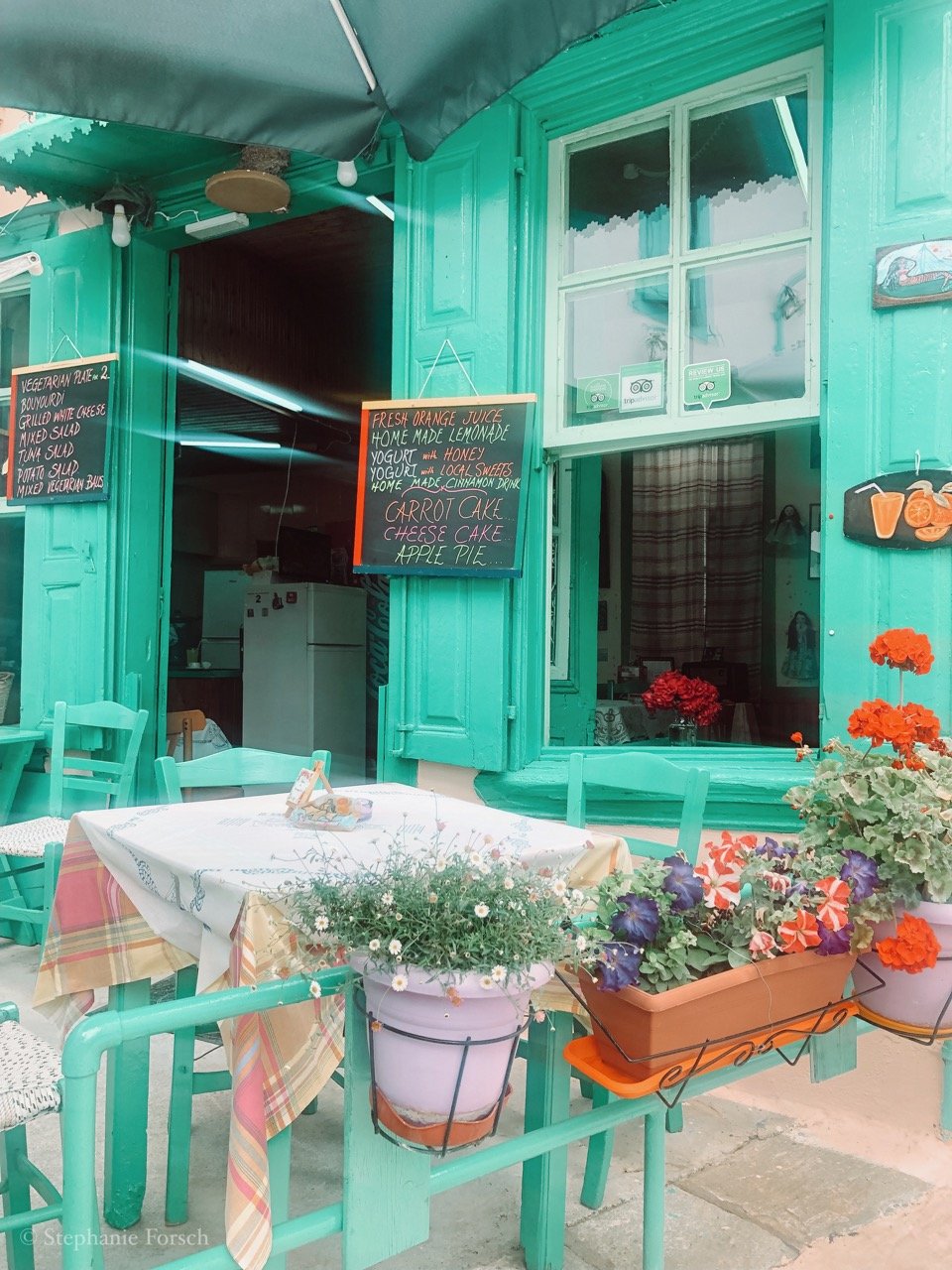 So schön das Wandern auch ist, irgendwann braucht jeder Frischluftfanatiker mal eine Stärkung. Für die Mittagspause hat sich Marjan immer ganz besonders tolle Orte und Lokalitäten herausgesucht. Diese süßen Bergdörfer unterwegs werde ich jedenfalls nicht mehr so schnell vergessen. Und so durchqueren wir auf unseren Wanderungen uralte Dörfer mit Namen wie Manolates, Stavrinides und Ambelos. Das Bergdorf Vourliotes hat mich ganz besonders verzaubert. Einfach traumhaft: