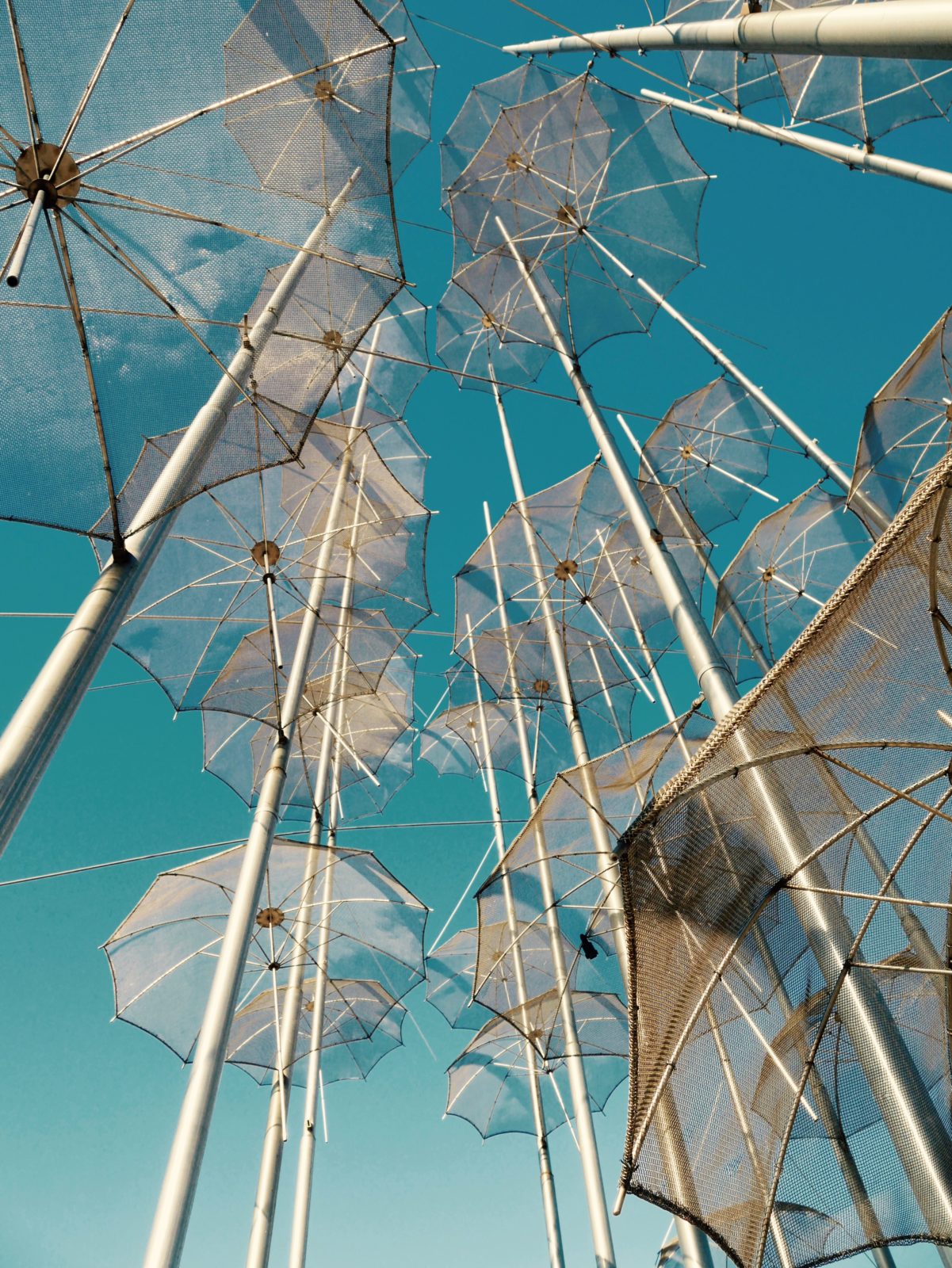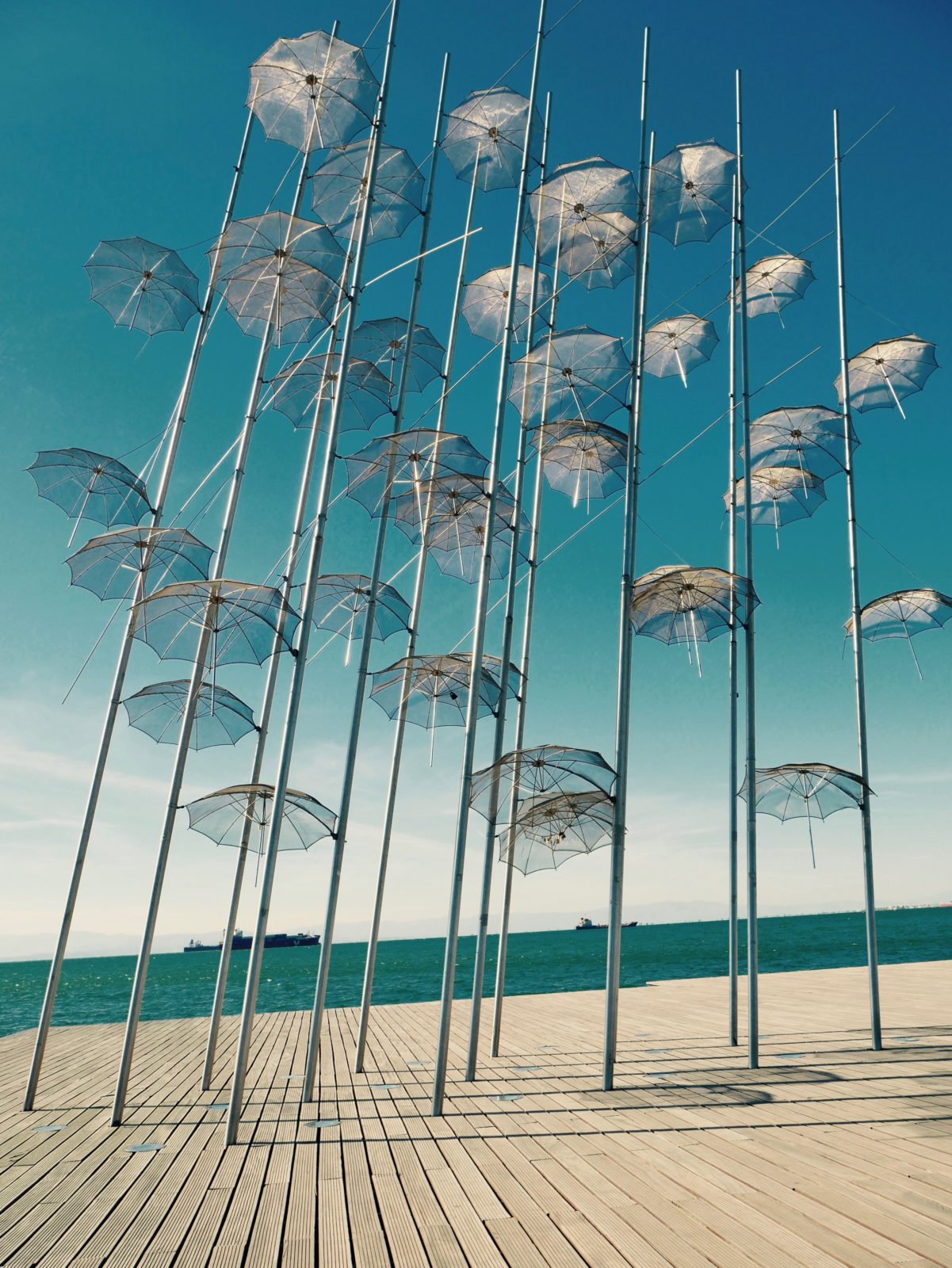 Ein sehr beliebtes Fotomotiv in Thessaloniki ist die 1997 errichtete Schirmskulptur von George Zongolopoulos. Sie befindet sich direkt am Wasser und ist auch bei Nacht ein Highlight, denn dann wird die Skulptur von unten beleuchtet.