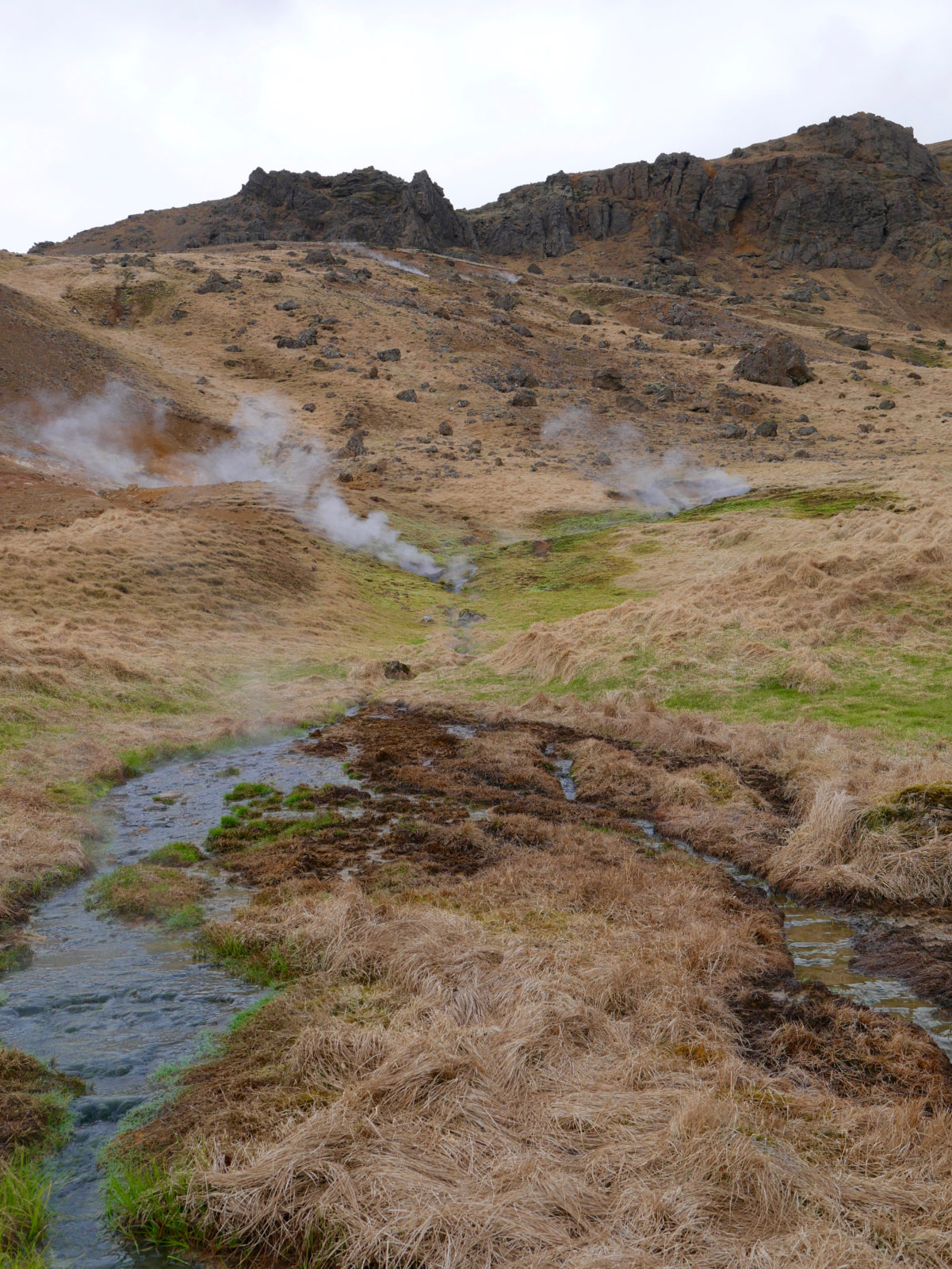 Ungefähr 45 Minuten Fahrtzeit von Reykjavik entfernt, liegt ein geothermales Feld. Bekannt ist dieses Gebiet eigentlich für seinen warmen Fluss, in dem du auch herrlich baden kannst. Angekommen am Parkplatz (an dem durchaus recht viel los sein kann) gelangst du über einen kleinen Steg an eine Weggabelung. Nach links geht es zu der Stelle, an der du im Fluss baden kannst. Hier kann es verdammt touristisch werden, denn die Nähe zu Reykjavik lockt natürlich viele Besucher an!
