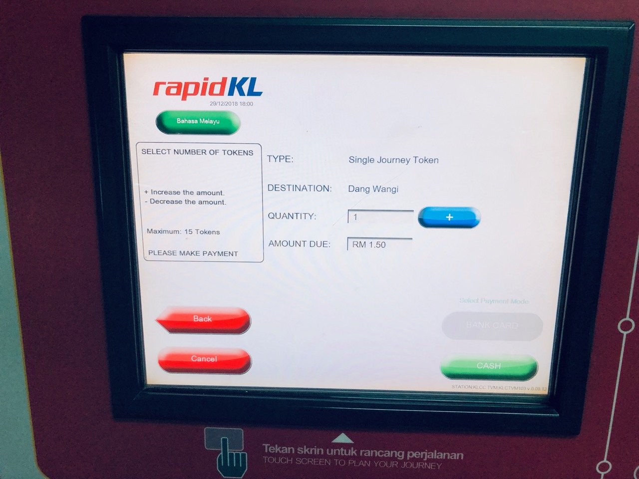 Es gibt auch aufladbare Karten für die rapid KL und Wochen- und Monatstickets. Dazu musst du dann aber direkt an den Service Schalter (nicht an den Automaten). Da ich aber nie genau wusste, was genau ich am Tag unternehmen würde, habe ich mir einfach immer ganz spontan am Automaten einen entsprechenden Token besorgt. Das ging nach einem Tag schon echt fix bei mir und lange anstehen musst du an den Automaten auch nicht.