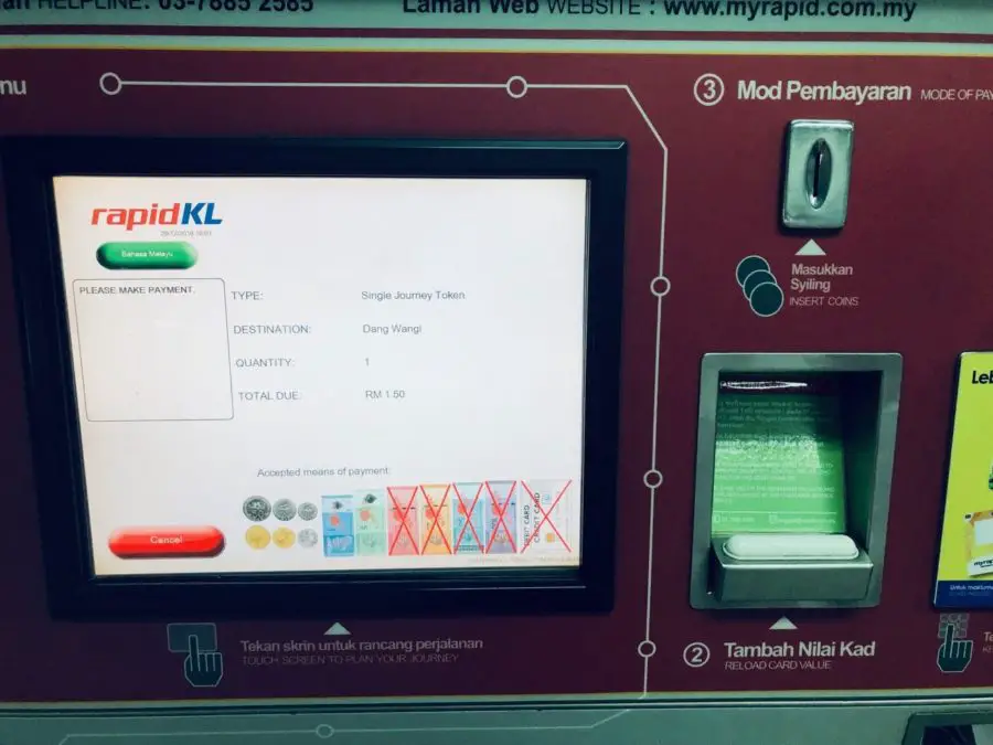 Falls du jetzt ein klassisches Papierticket erwartest, wirst du enttäuscht. Die Kuala Lumpur Metro funktioniert mit sogenannten Token (so kleinen Plastikchips). Da du dich also zu Beginn immer für eine Linie (mit den dazugehörigen Stationen) entscheiden musst, musst du also auch jedes Mal, wenn du die Linie wechselst, einen neuen Token kaufen.