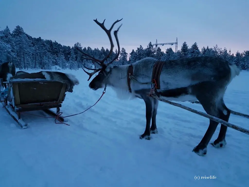 Und zum Schluss noch eine Empfehlung: Wir haben fast all unsere Aktivitäten in die Vormittags-/Mittagszeit gelegt. Da ist es einigermaßen hell. Was hätte es mir gebracht mit einem Rentierschlitten abends im Dunklen durch den Wald zu fahren. Schlechte Sicht, bitterkalt und gute Fotos kannst Du auch nicht schießen.