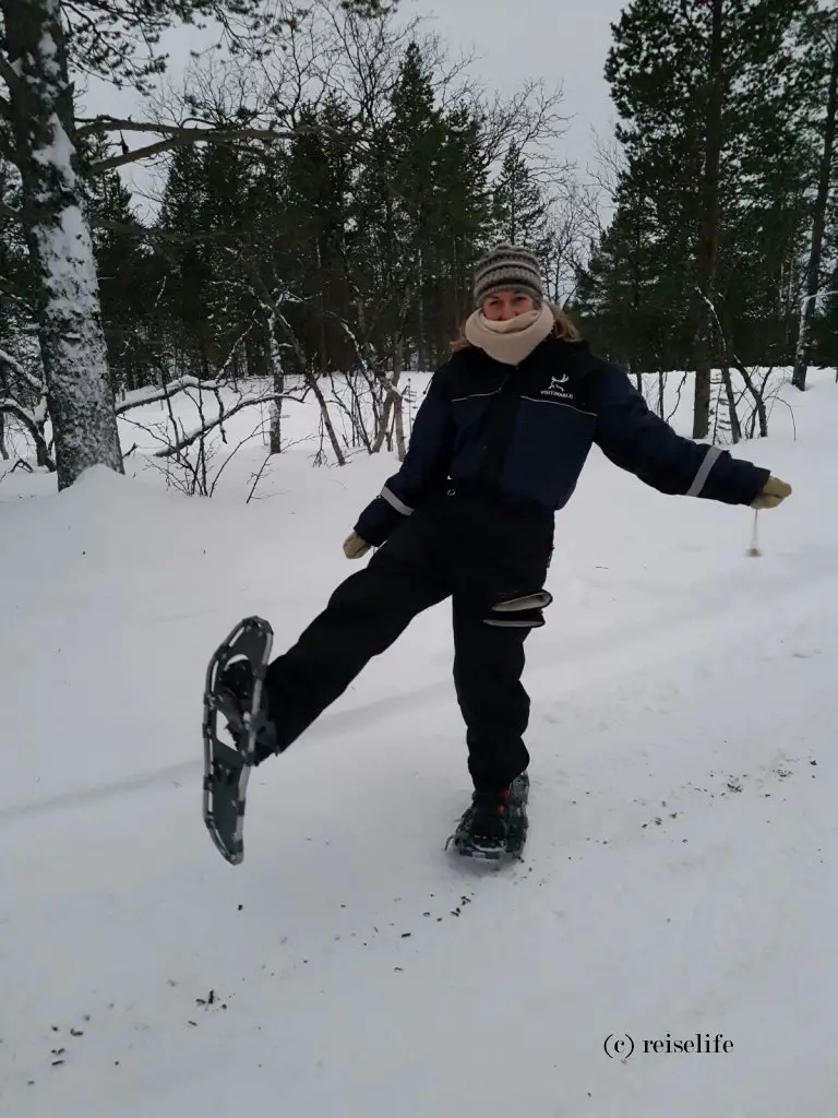 Schneeschuhwandern in der Natur Lapplands