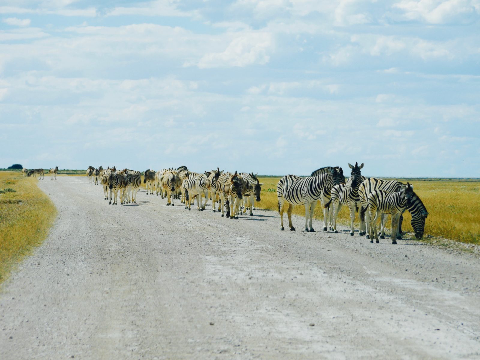 - Eine Zebra Herde versperrt uns dem Weg