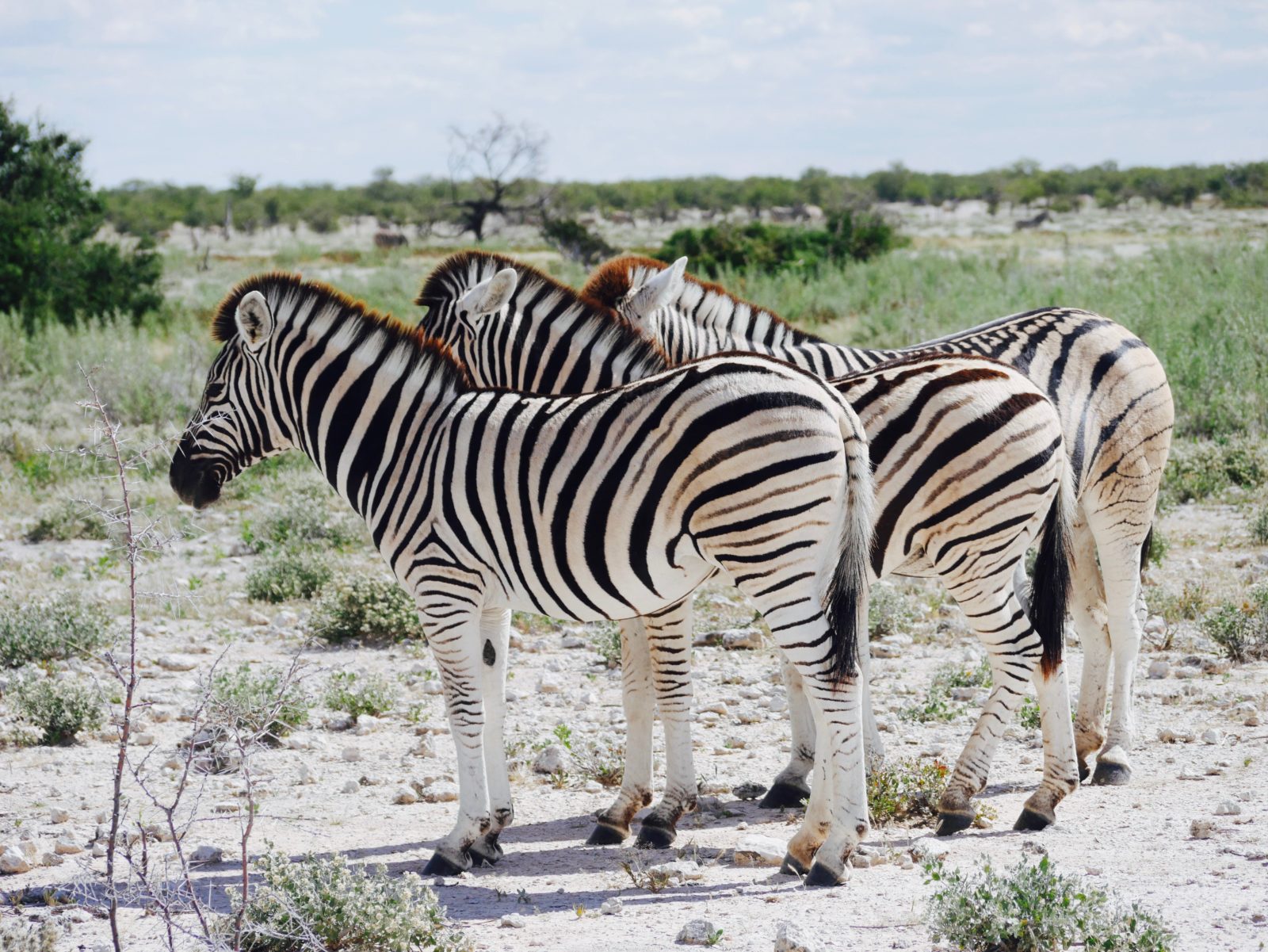 Am nächsten Morgen ging es direkt nach dem Frühstück zum Auschecken und dann in den Park. Die heutige Strecke liegt links vom Halali Camp. Übernachtet wird im Okaukuejo Camp.