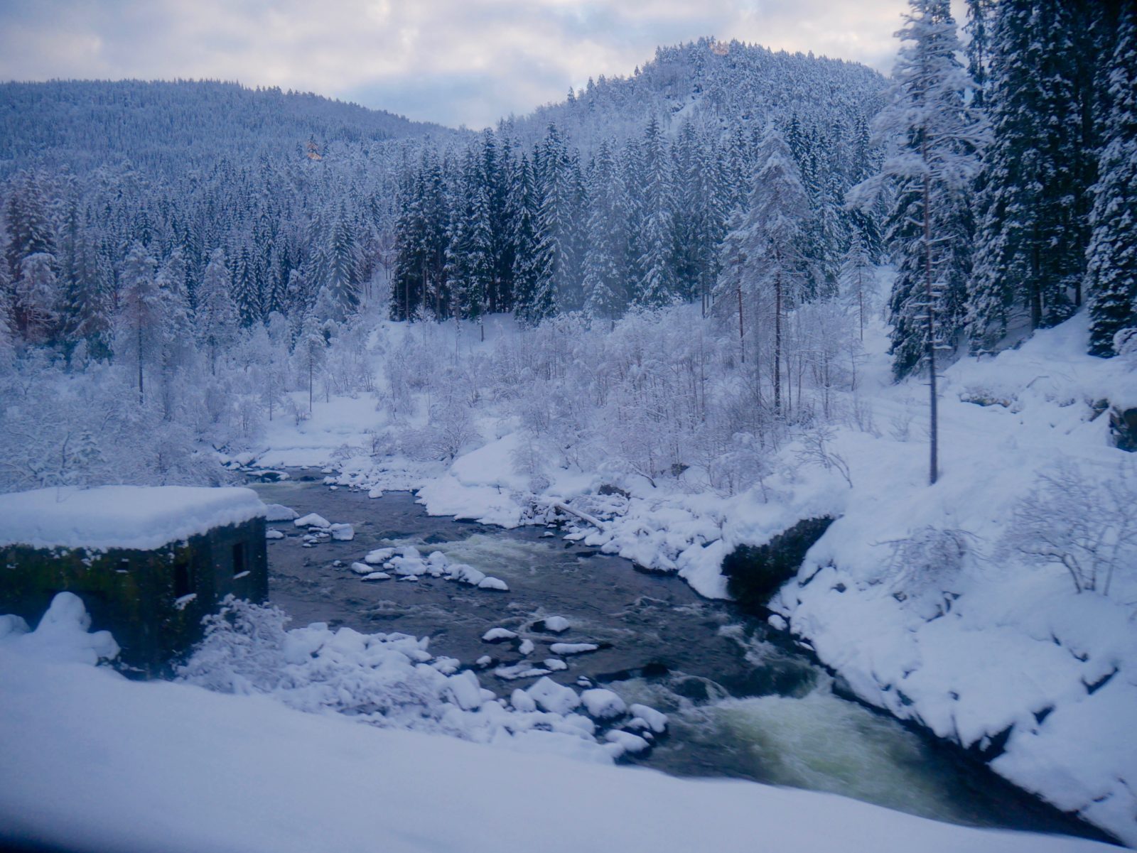 Der Zug ist voll, aber ich bekommen trotzdem noch einen schönen Sitzplatz. Obwohl dies nun eigentlich relativ egal ist, denn im Dezember geht gegen 16 Uhr die Sonne unter. Es ist also schnell dunkel und ich schlummere langsam weg. Im Sommer hat man natürlich den klaren Vorteil, dass man die schönen Ausblicke auch auf dem letzten Part der Tour noch genießen kann, da es dann noch hell ist. Die Fahrt dauert nun noch einmal circa 2 Stunden.