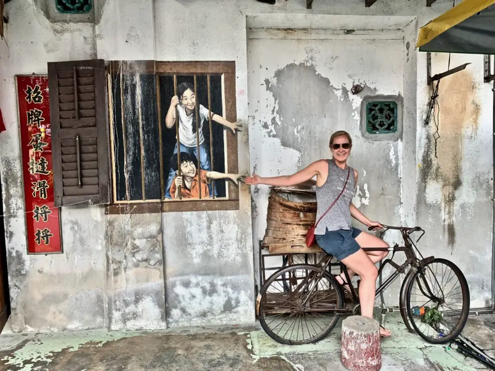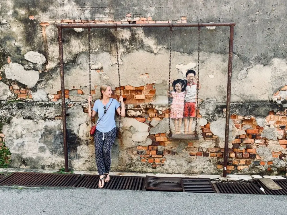 Ein großes Highlight in George Town ist sicherlich die spektakuläre und interaktive Street Art. Sie lädt dich teilweise dazu ein, Teil des Bildes zu werden. Überall verteilt in der Stadt befinden sich kreative Kunstwerke an den Häuserfassaden. Plane also bei deinem Aufenthalt auf jeden Fall einen kleinen Street Art Rundgang ein. Mit Wartezeiten zum Fotografieren und kleineren Pausen solltest du dafür wenigstens 3 Stunden einplanen.