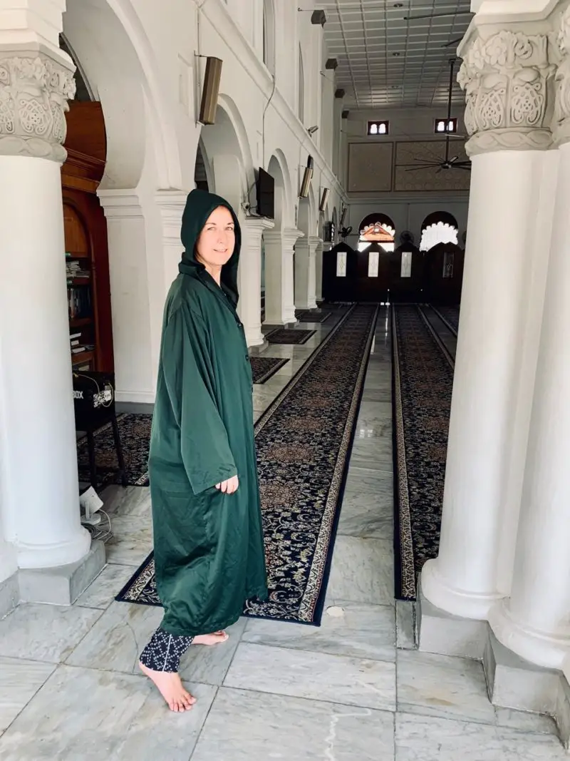 Mitten im Zentrum der Altstadt befindet sich die wichtigste Moschee der Stadt- die Masjid Kapitan Keling. Wenn nicht gerade Gebetszeit ist, kannst du diese auch von innen besichtigen. Fotos dürfen dort allerdings nicht gemacht werden. Außerdem ist auf angemessene Kleidung zu achten. Ich habe am Eingang einen Umhang bekommen – erst dann durfte ich die Moschee betreten. Sie ist aber auf jeden Fall sehenswert.