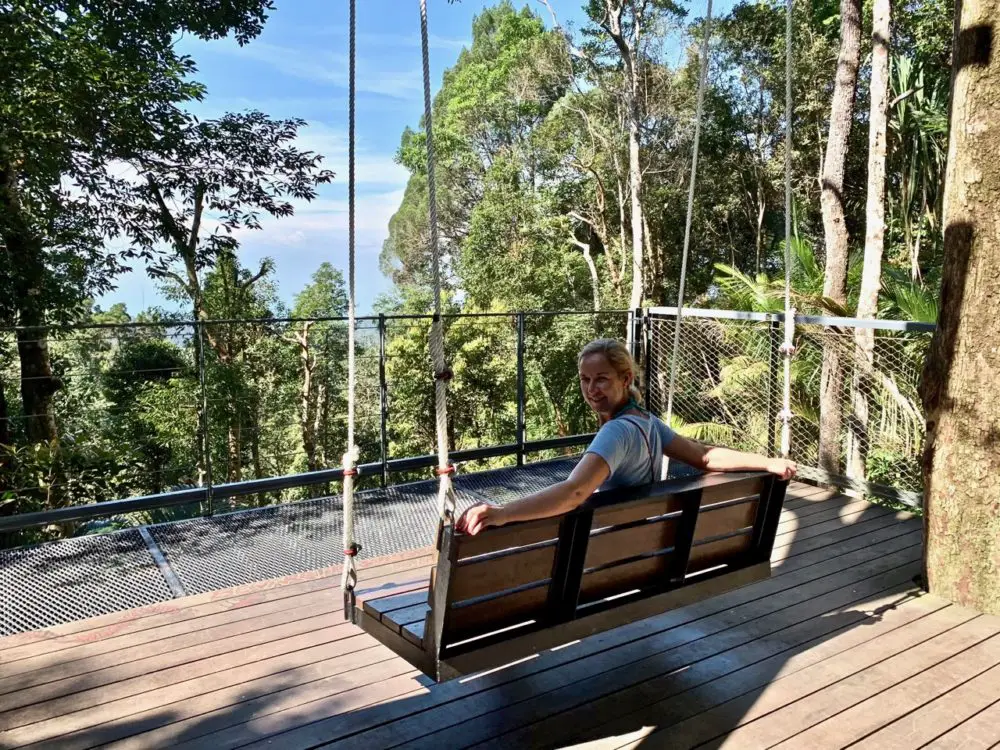 Oben findest du dann Cafés, Souvenirläden, eine Moschee, Spielplätze und ein Eulenmuseum. Hatte mich jetzt alles nicht wirklich umgehauen, insbesondere weil es so mega voll war. Was sich aber auf jeden Fall lohnt, ist das sogenannte THE HABITAT, das sich ebenfalls oben auf dem Penang Hill befindet. Ein Shuttle fährt dich die kurze Strecke dort hin. Die Tickets kannst du direkt auf dem Hauptplatz oben auf dem Penang Hill kaufen.