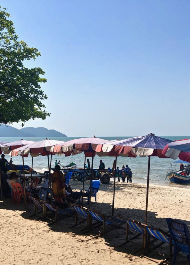 Und wenn du mal Standurlaub auf malaysisch erleben möchtest, dann fährst du nochmal knapp 7km weiter bis zum BATU FERINGGHI BEACH. Hier befindet sich ein richtiges Spiel- und Spaß Paradies. Mit Entspannung hat das nichts zu tun, war aber trotzdem irgendwie lustig anzuschauen.