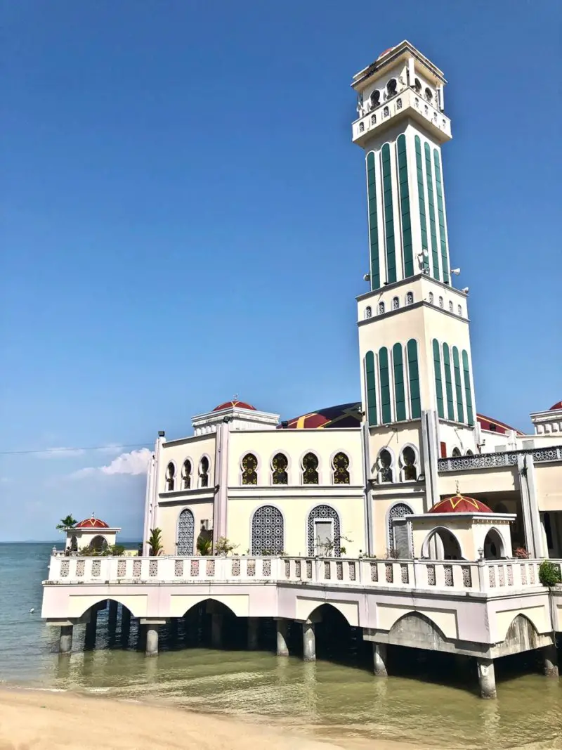 Wenn du dich von George Town aus auch einmal in Richtung Norden auf den Weg machen möchtest, lohnt ein Stopp an der ungefähr 12 km entfernten Schwimmenden Moschee in Tanjung Bungah. Ihrem Namen wird sie allerdings nur zur Flut gerecht. Bei Ebbe sieht das ganze etwas unspektakulär aus.