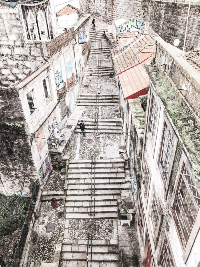 Fast noch ein kleiner Geheimtipp sind die Treppen dos Guindais. 400 Stufen führen von oben bis nach unten an den Douro Fluss. Die Treppen enden fast direkt an der Ponte Dom Luís I. Auf eurem Weg nach unten habt ihr immer wieder sehr schöne Ausblicke auf die Umgebung und auf Porto. Theoretisch könnt ihr genau diesen Weg auch mit der Seilbahn zurücklegen. Für den Weg hoch vielleicht auch garkeine so schlechte Idee, aber nach unten solltet ihr auf jeden Fall die Treppen nehmen.