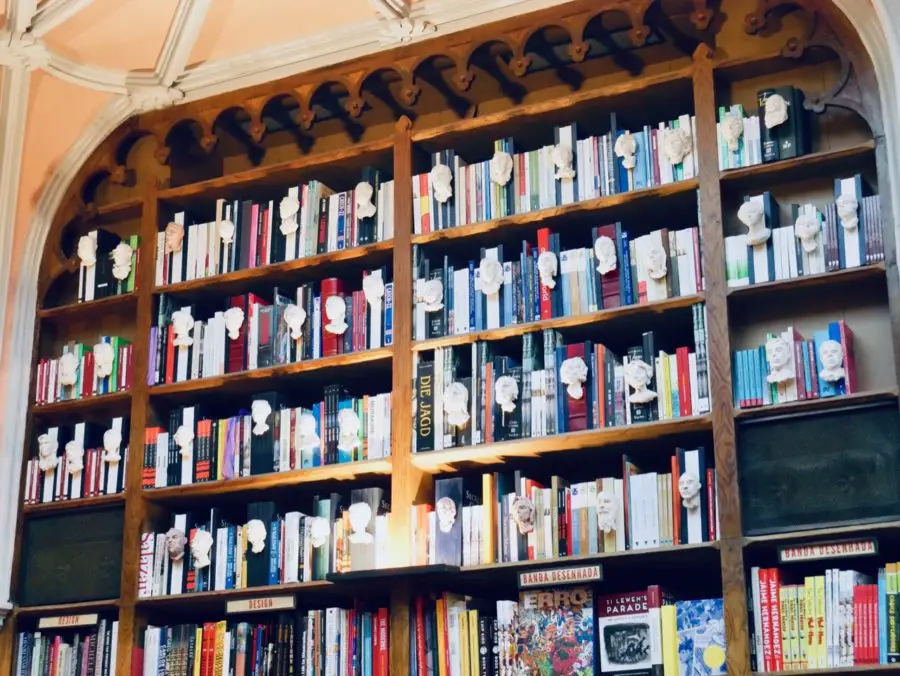 Sie ist definitiv die berühmteste Buchhandlung in ganz Portugal. Ich bin erst etwas später am Abend hin, denn tagsüber soll es in der Buchhandlung sehr voll sein. Als ich gegen 17:30 Uhr ankam, war es in der Tat recht leer. Schon längst hat man den Wert erkannt und verlangt sogar einen Eintritt für den Besuch. Dein Ticket kaufst du nicht direkt in der Buchhandlung, sondern in dem ein paar Meter entfernten Geschäft Armazéns do Costelo. Auf dem linken Bild siehst du den Kassenbereich, an dem du für 5 EUR dein Eintrittsticket kaufen kannst. Kaufst du dir dort ein Buch, werden diese 5 EUR auf deinen Kauf angerechnet.