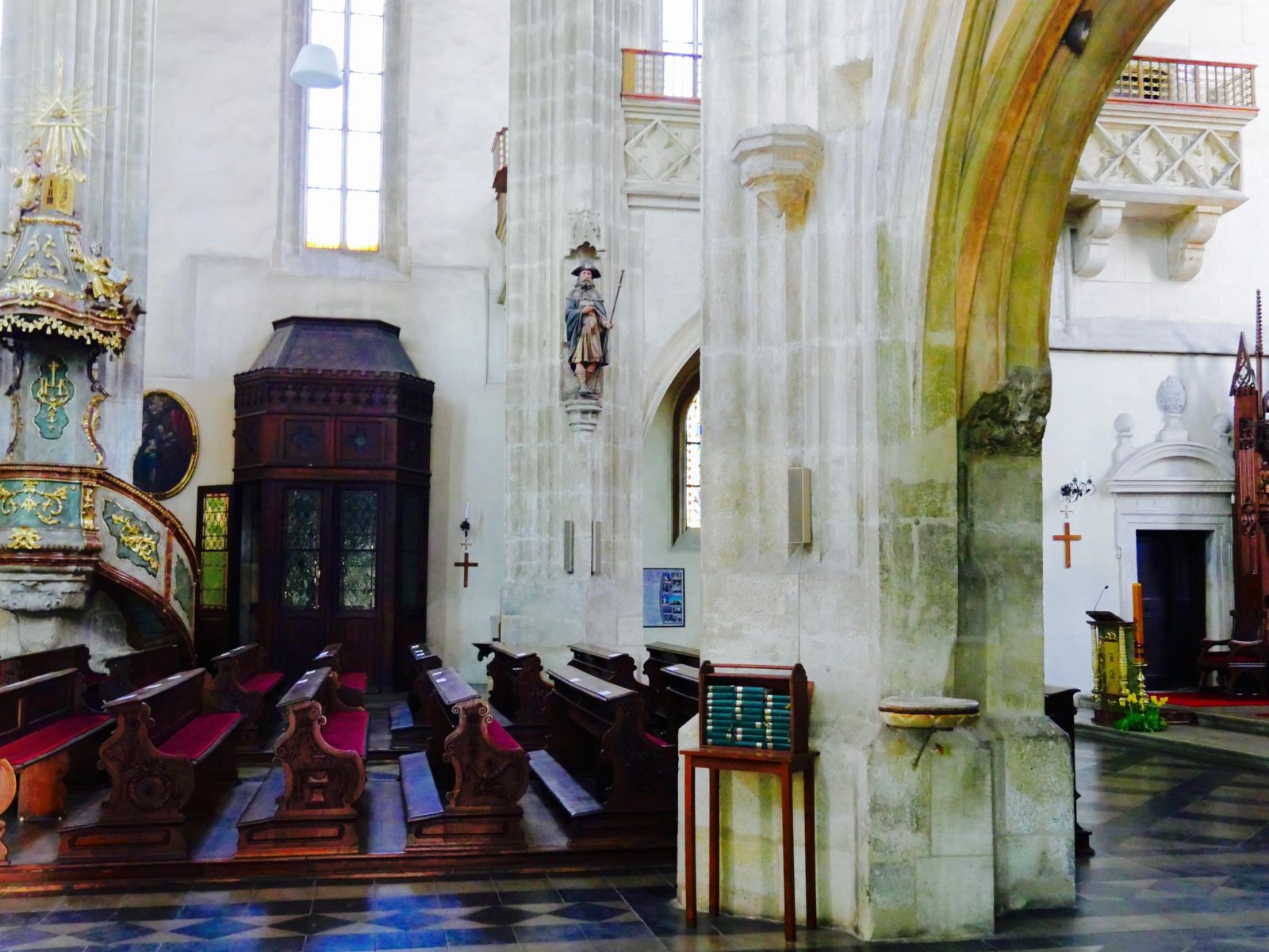 Von der Knochenkirche bis zum Dom ist es ein Fußmarsch von circa 40 Minuten (knapp 3 Kilometer). Der Dom liegt nämlich mitten in der schönen Altstadt von Kuttenberg. Alternativ könnt ihr aber auch den Bus nehmen, der in der Nähe der Knochenkirche (bspw. an der Station Cechova) abfährt. Ihr steigt am besten an der Station „Centrum“ aus. Von dort ist es dann noch ein Fußweg von maximal 10 Minuten. Die Buspreise sind extrem preiswert. Ich habe für die Strecke 12 Kronen bezahlt (ca. 50 Cent).