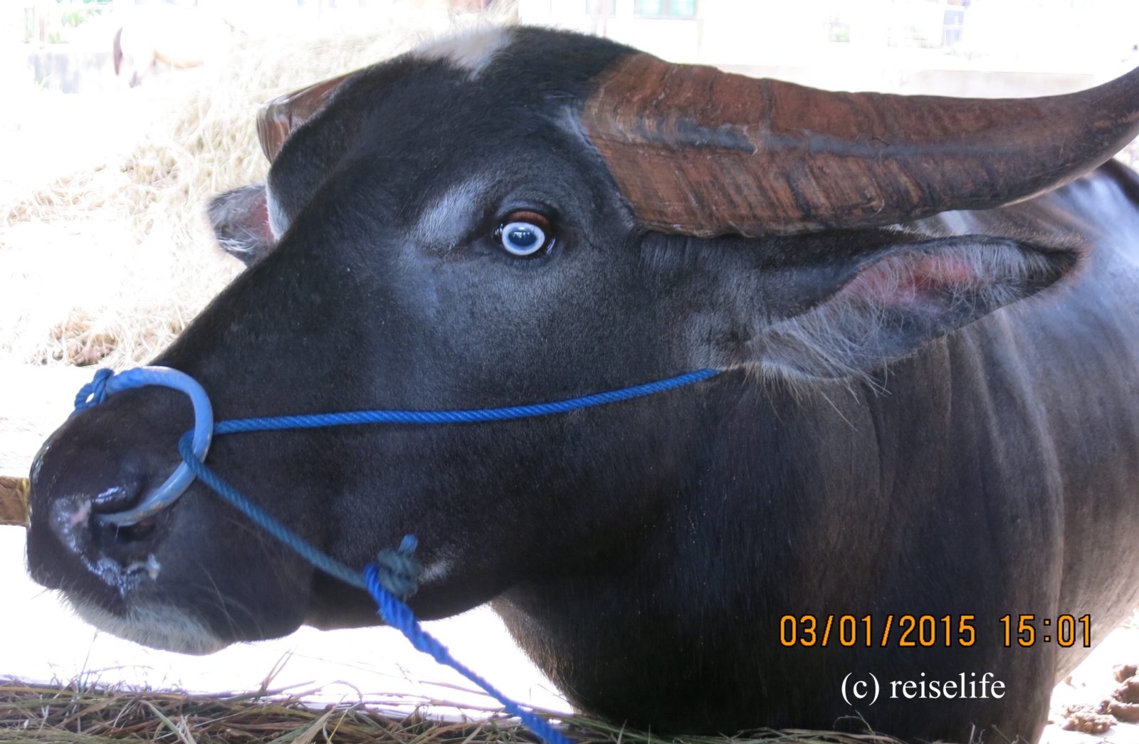 - Ein Wasserbüffel wird gewaschen