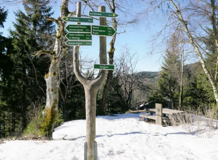 Dauer & Strecke: Insgesamt ca. 10 Kilometer (Achtung – Im Schnee ist man deutlich langsamer unterwegs). 4 Stunden (inkl. Pausen) sollten eingeplant werden. Bei Start am Rondell Oberhof ist die Gesamtstrecke um ca. 3,5 Kilometer kürzer.