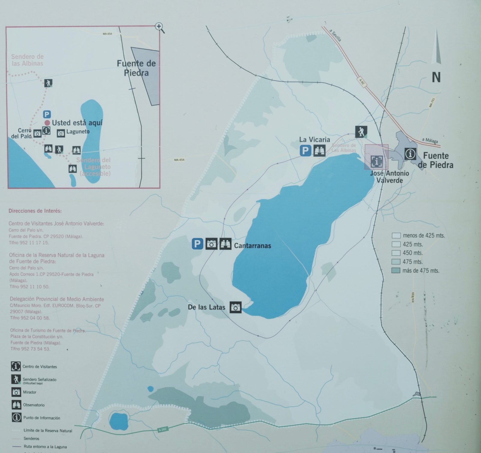 Zu allererst lohnt ein Besuch im Besucherzentrum. Dort werden in einer Ausstellung viele nützliche Informationen zu der Tierwelt insbesondere auch zu den Flamingos in Andalusien zur Verfügung gestellt, allerdings überwiegend auf Spanisch. Das Besucherzentrum ist von 10.00 – 14.00 Uhr und dann wieder von 17.00 – 19.00 Uhr geöffnet (im Sommer). Im Winter ist die Öffnungszeit am Nachmittag von 16.00 – 18.00 Uhr. Von dort oben hast du einen guten Blick über die gesamte Lagune und kannst schauen, wo sich vielleicht etwaige Flamingos aufhalten.